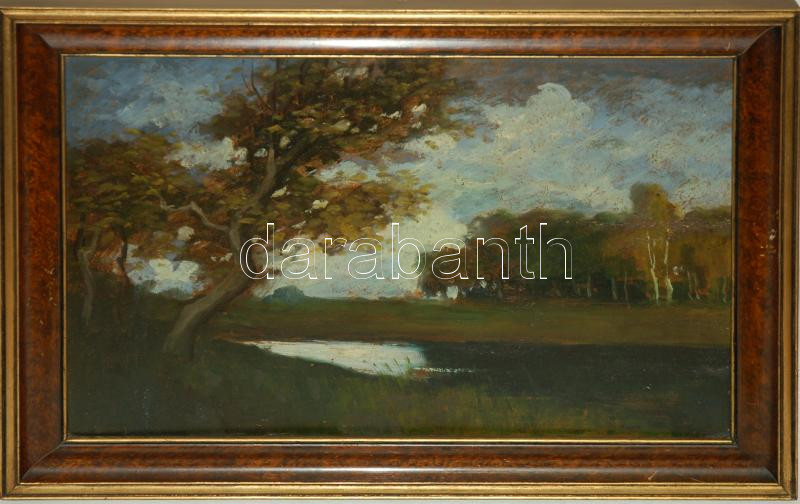 Leírás: Markó jelzéssel. Folyóparti táj. Olaj, karton, keretben 60x40 cm