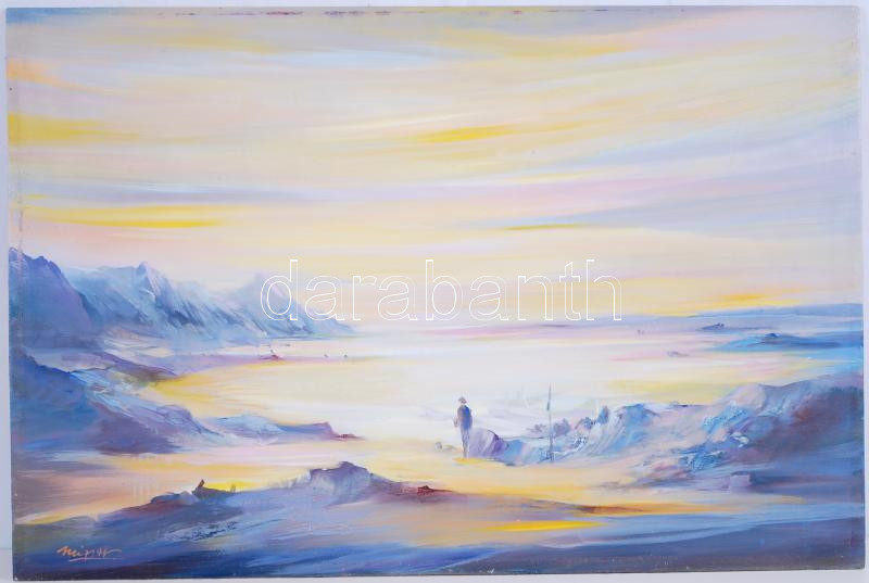 Mizser Pál (1941-): Megváltó reménység. Olaj, farost, jelzett, 40×60 c... https://www.darabanth.com/hu/182-Gyorsarveres/182.0/Festmeny-mutargy-papirregiseg-egyeb/Festmenyek-es-grafikak~400002/Mizser-Pal-1941-Megvalto-remenyseg-Olaj-farost-jelzett-40C39760-cm~II654678