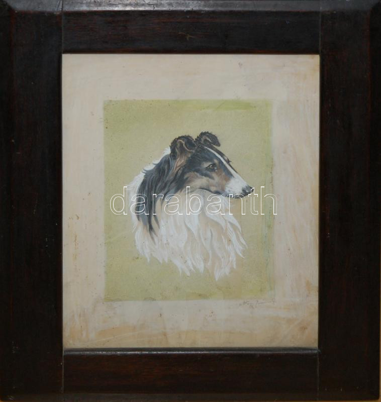 Leírás: Nagy B. István (1933) Munkácsy-díjas festő: Skót juhászkutya, vegyes technika, papír, üvegezett keret, 22×15 cm