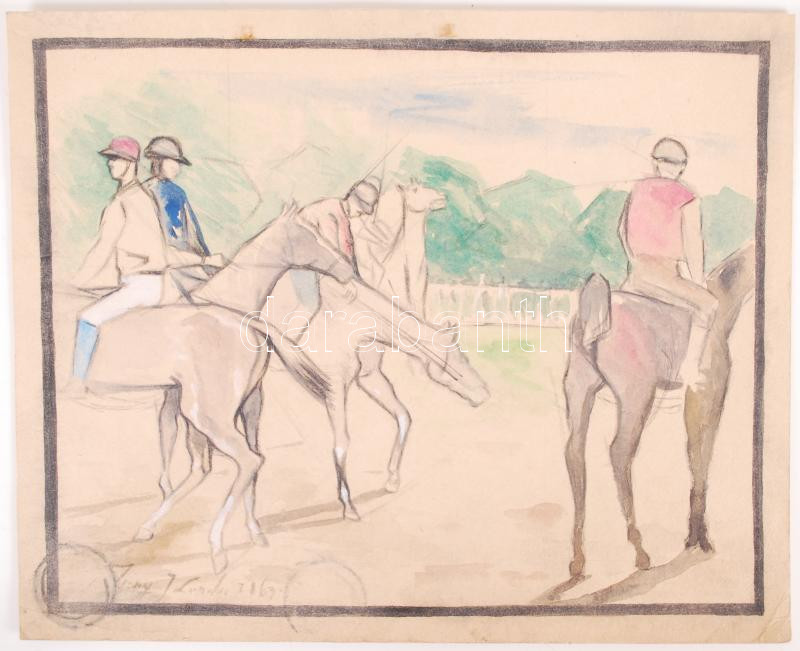 Olvashatatlan jelzéssel: Lovaspóló. Grafit, pasztell, akvarell, papír,... https://www.darabanth.com/hu/182-Gyorsarveres/182.0/Festmeny-mutargy-papirregiseg-egyeb/Festmenyek-es-grafikak~400002/Olvashatatlan-jelzessel-Lovaspolo-Grafit-pasztell-akvarell-papir-21-5x26-5cm~II653447