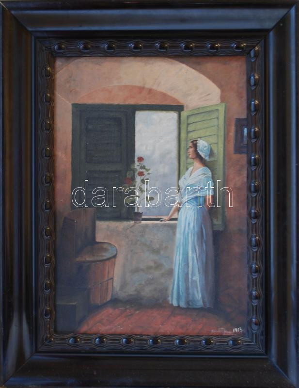 Leírás: Olvashatatlan jelzéssel: Merengő 1913, olaj, karton, 60×46 cm, szép keretben