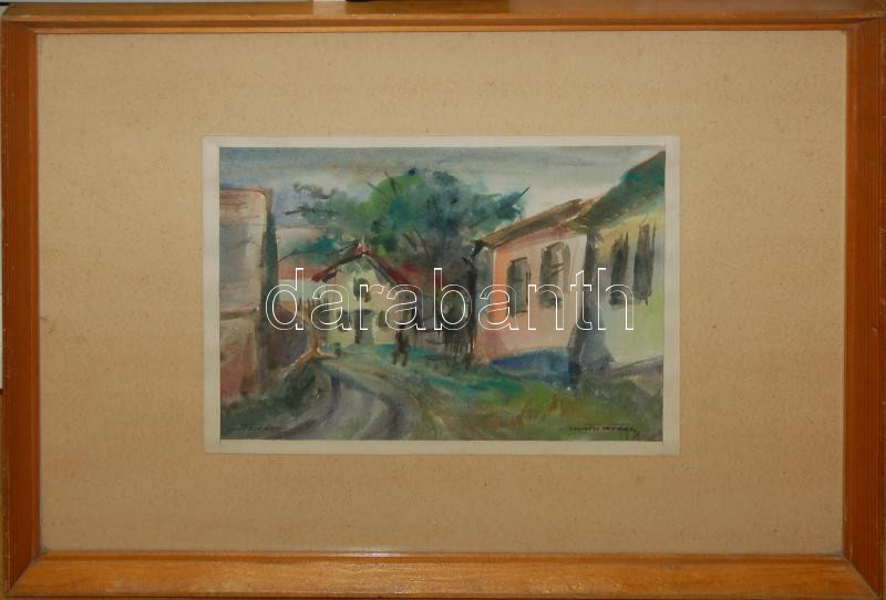 Leírás: Olvashatatlan jelzéssel: Tokaj, akvarell, papír üvegezett keretben, 21×28 cm