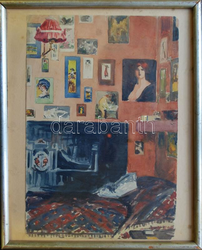 Olvashatatlan jelzéssel:A festő szobája, akvarell, papír, üvegezett ke... https://www.darabanth.com/hu/182-Gyorsarveres/182.0/Festmeny-mutargy-papirregiseg-egyeb/Festmenyek-es-grafikak~400002/Olvashatatlan-jelzesselA-festo-szobaja-akvarell-papir-uvegezett-keret-31C39725-cm~II581902