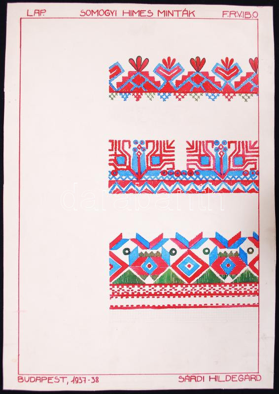 Sárdi Hildegrád: Somogyi hímes minták. Filc, papír, jelzett, 38×27 cm https://www.darabanth.com/hu/182-Gyorsarveres/182.0/Festmeny-mutargy-papirregiseg-egyeb/Festmenyek-es-grafikak~400002/Sardi-Hildegrad-Somogyi-himes-mintak-Filc-papir-jelzett-38C39727-cm~II655518