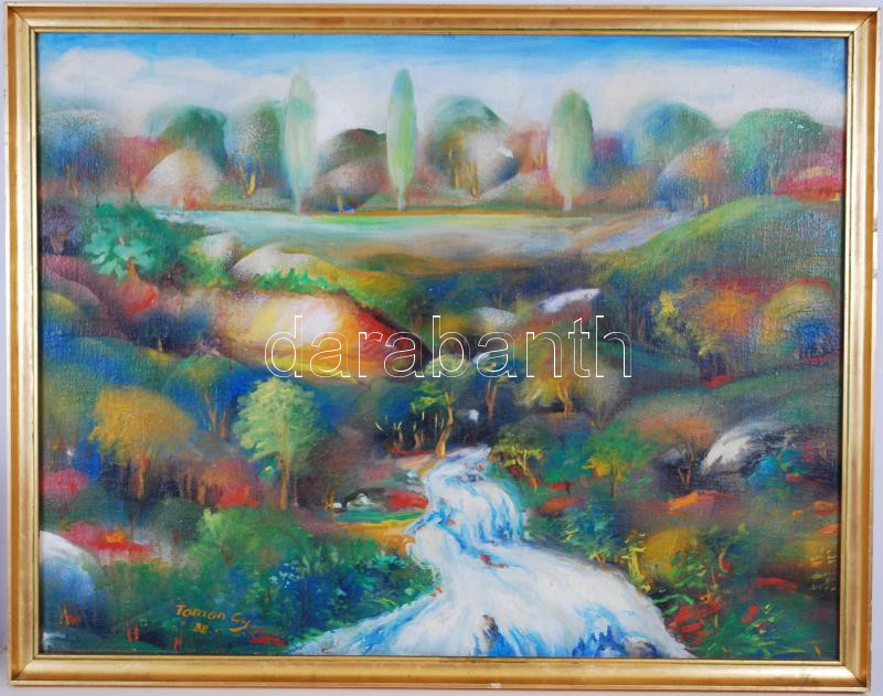Leírás: Toman Gyula: Tájkép patakkal. Olaj, vászon, jelzett, keretben 74×94 cm