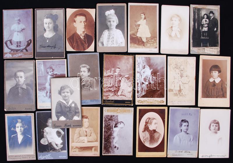 Leírás: 1880-1930 22db keményhátú fotó gyerekekről, klf műtermekből, vizitkártya méretben /