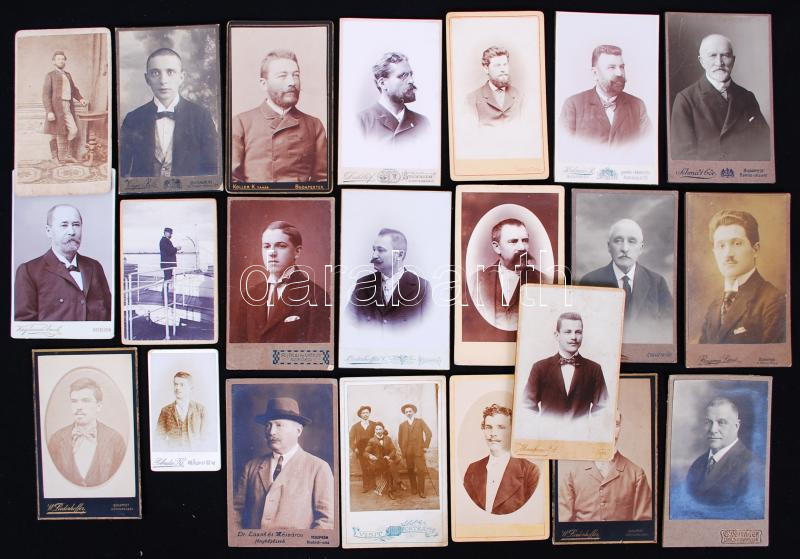 Leírás: 1880-1930 22db keményhátú fotó urakról, klf műtermekből, vizitkártya méretben /
