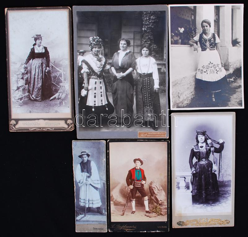 Leírás: cca 1880-1920 6db keményhátú folklór fotó különféle viseletekről, különféle méretben /