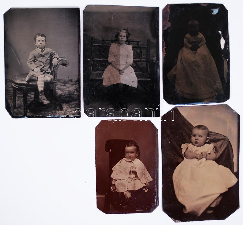 Leírás: cca 1900 5db ferrotípia gyerekekről /