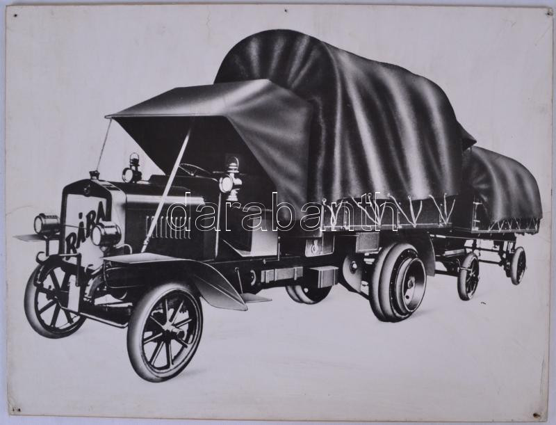 Leírás: cca 1930 Nagyméretű fénykép egy Rába teherautóról, amerikai retussal feljavítva, kartonra kasírozva, 30,5x40cm