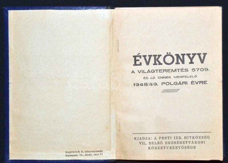Leírás: 1948 Évkönyv a világteremtés 5709. évére