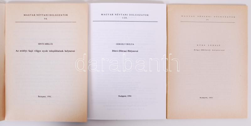 Magyar Névtani Dolgozatok: 10db erdélyi helynévtörténeti kiadvány https://www.darabanth.com/hu/182-Gyorsarveres/182.0/Festmeny-mutargy-papirregiseg-egyeb/Konyvek-Tortenelem-2~400033/Magyar-Nevtani-Dolgozatok-10db-erdelyi-helynevtorteneti-kiadvany~II617052