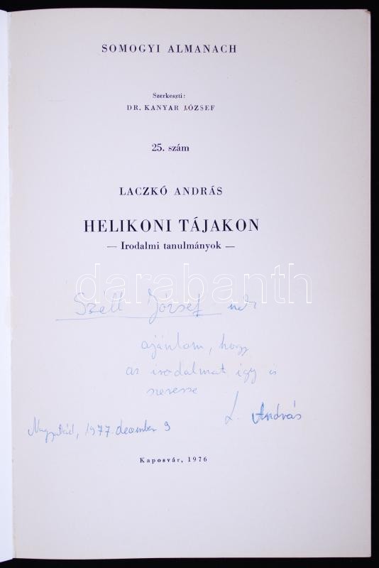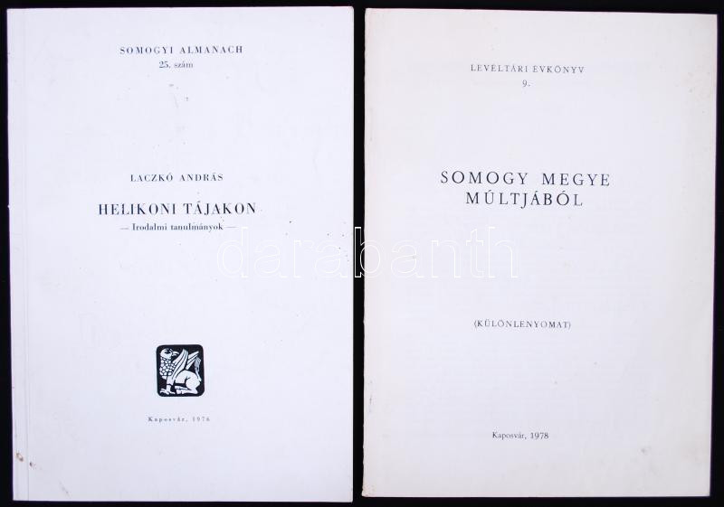 Leírás: 1976 és 1978 Levéltári Évkönyv, Lackó András: Somogy megye múltjából. Helikoni tájakon. Dedikált