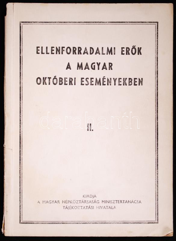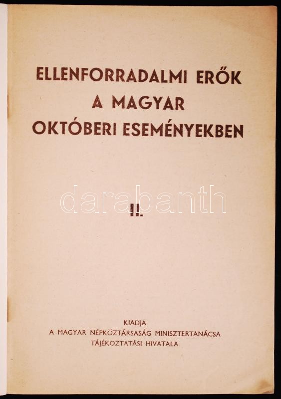 Leírás: Ellenforradalmi erők a magyar októberi eseményekben II. MNM tájékoztatási hivatala. É.n.