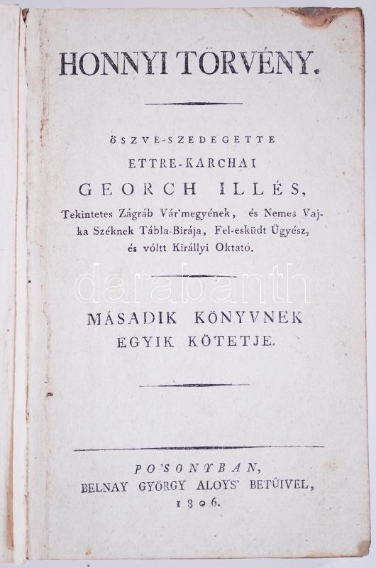 Ettre-Karchai Georch Illés: Honnyi törvény (II./1.) Posonyban, 1806. Belnay György Aloys betűivel.