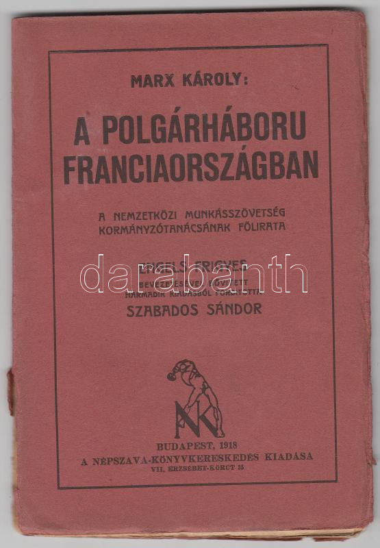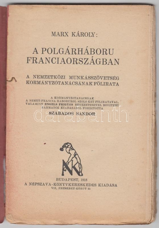 Marx Károly: A polgárháború Franciaországban. Bp., 1918 Népszava 96p. https://www.darabanth.com/hu/182-Gyorsarveres/182.0/Festmeny-mutargy-papirregiseg-egyeb/Konyvek-Tortenelem~400029/Marx-Karoly-A-polgarhaboru-Franciaorszagban-Bp-1918-Nepszava-96p~II638868