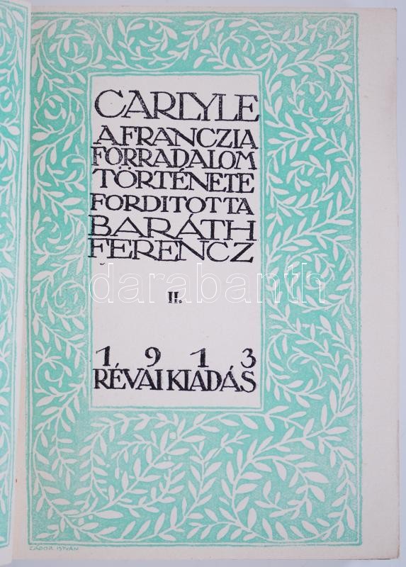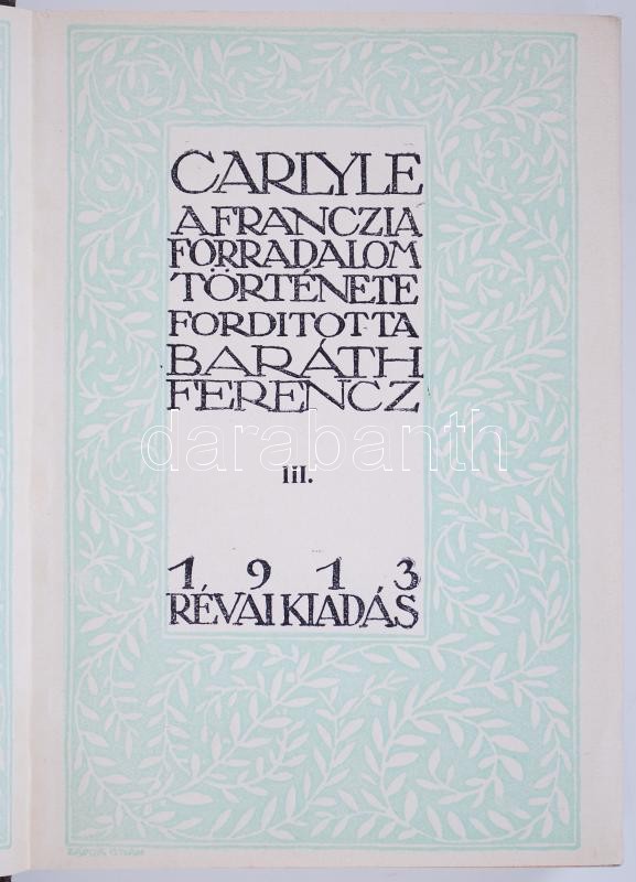 Thomas Carlyle: A franczia forradalom története II-III. Ford. Baráth Ferencz. (Világkönyvtár) Bp., 1913, Révai. Kiadói, festett egészvászon sorozatkötésben