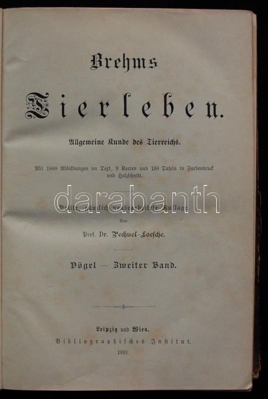 Brehms, Alfred E.: Tierleben. 2. Band. Vögel. / Madarak. Leipzig und W... https://www.darabanth.com/hu/182-Gyorsarveres/182.0/Festmeny-mutargy-papirregiseg-egyeb/Konyvek-Tudomany~400043/Brehms-Alfred-E-Tierleben-2-Band-Vogel-Madarak-Leipzig-und-Wien-1891-710p-felbor-kot~II539860