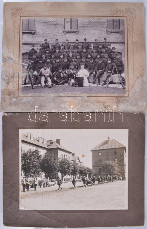 Leírás: 1910-1940 2db nagyméretű katonai fotó, kartonra kasírozva (az egyik sérült) /