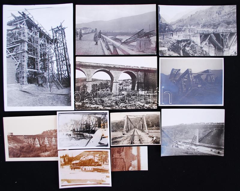 1914-1944 11db katonai felvétel hidakról és hídépítésekről az I. és II. világháború idejéből, klf. méretben /