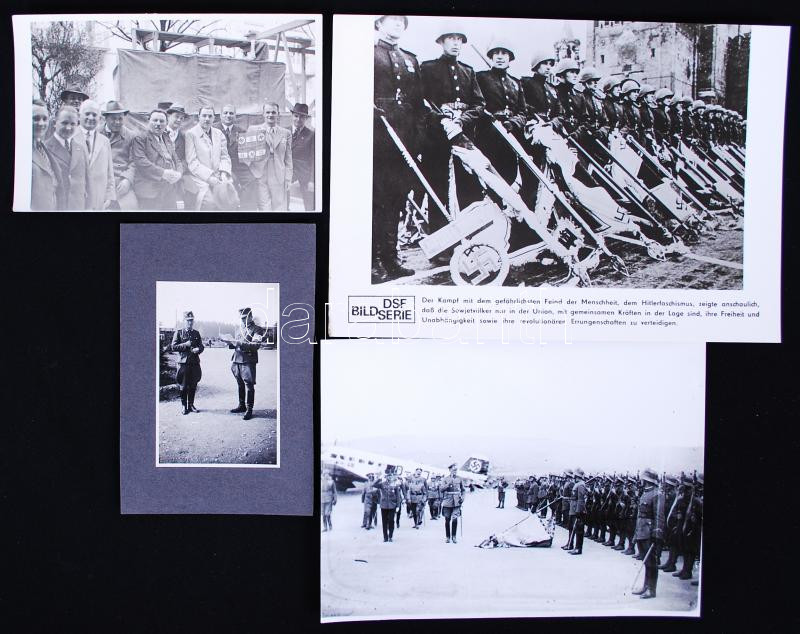 Leírás: 1939-1945 4db katonai fotó horogkeresztes repülővel, zászlóval, katonákkal /