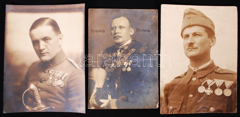 Leírás: cca 1914 3 db fotó kitüntetéseket viselő katonákról 18x24 cm