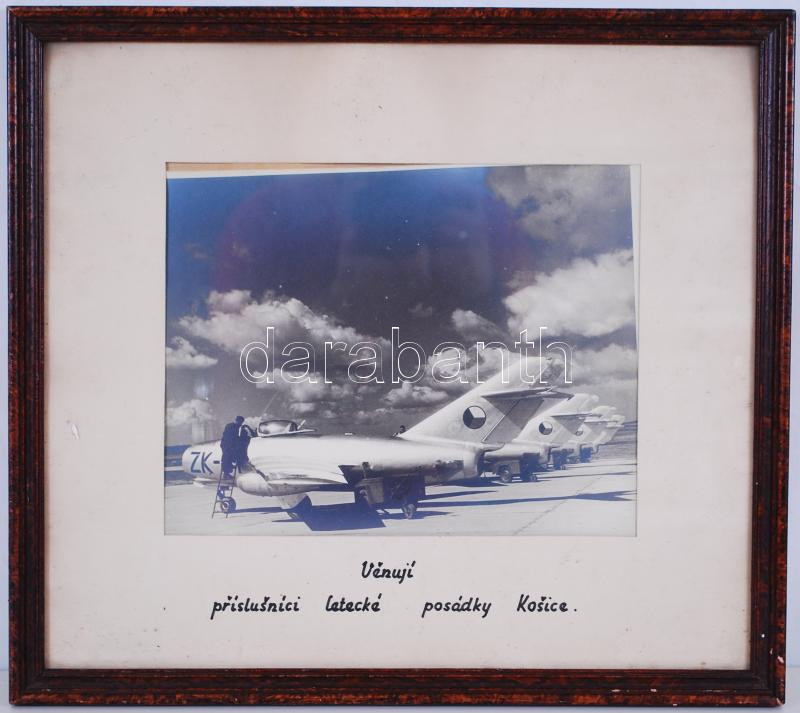 Four Czechoslova... https://www.darabanth.com/hu/182-Gyorsarveres/182.0/Festmeny-mutargy-papirregiseg-egyeb/Militaria~400025/cca-1950-Negy-vadaszrepulogep-a-kassai-repuloteren--3Cbr3EFour-Czechoslovakian-fighters-on-~II650182