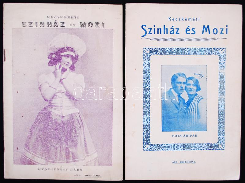 1925-1926 Kecskeméti Színház és Mozi. 2 db szám. https://www.darabanth.com/hu/182-Gyorsarveres/182.0/Festmeny-mutargy-papirregiseg-egyeb/Nyomtatvanyok~400039/1925-1926-Kecskemeti-Szinhaz-es-Mozi-2-db-szam~II650110
