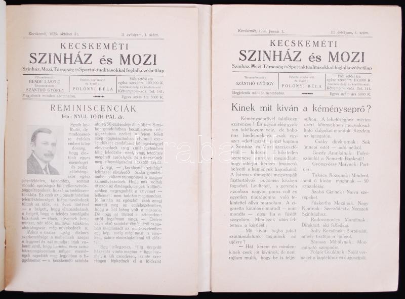 Leírás: 1925-1926 Kecskeméti Színház és Mozi. 2 db szám.