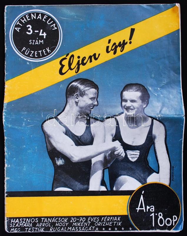 Leírás: cca 1940 Athenaeum füzetek: Éljen így. Tanácsok férfiaknak 20-70 között, hogy őrizhetik meg testük rugalmasságát