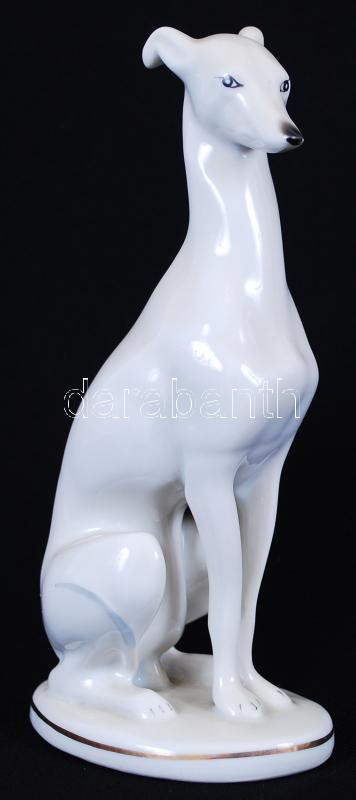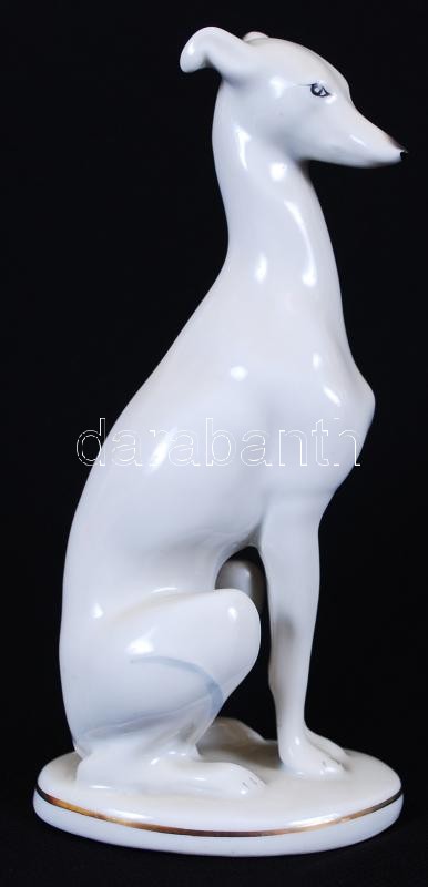 Leírás: Agár. Jelzett román porcelán figura, hibátlan, kézzel festett, m:16 cm / Porcelain figure
