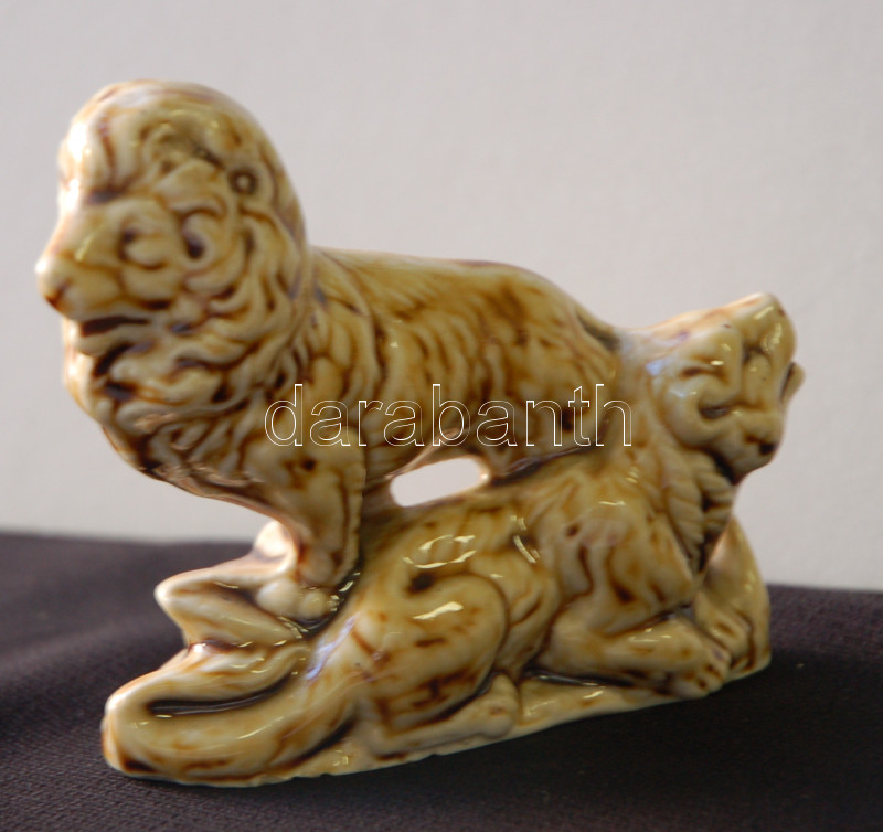 Leírás: Festett jelzés nélküli porcelán oroszlán figura /
