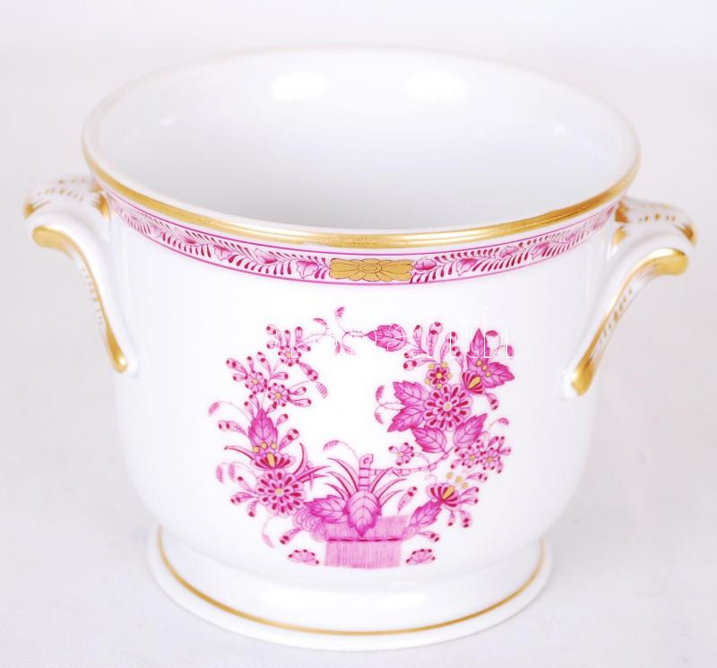 Leírás: Herendi Indiai kosár mintás kis kaspó, kézzel festett, jelzett, hibátlan, m:9 cm, d:11 cm /Handpainted Herend porcelain small pot