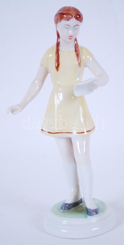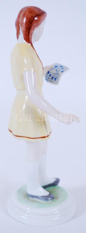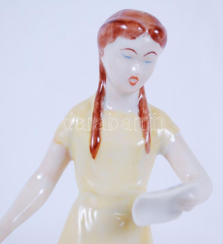 Leírás: Hollóházi, kottából éneklő kislány, kézzel festett, hibátlan, jelzett /Handpainted chinaware singer figure 17 cm