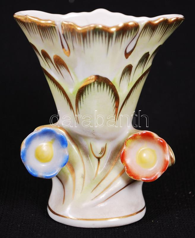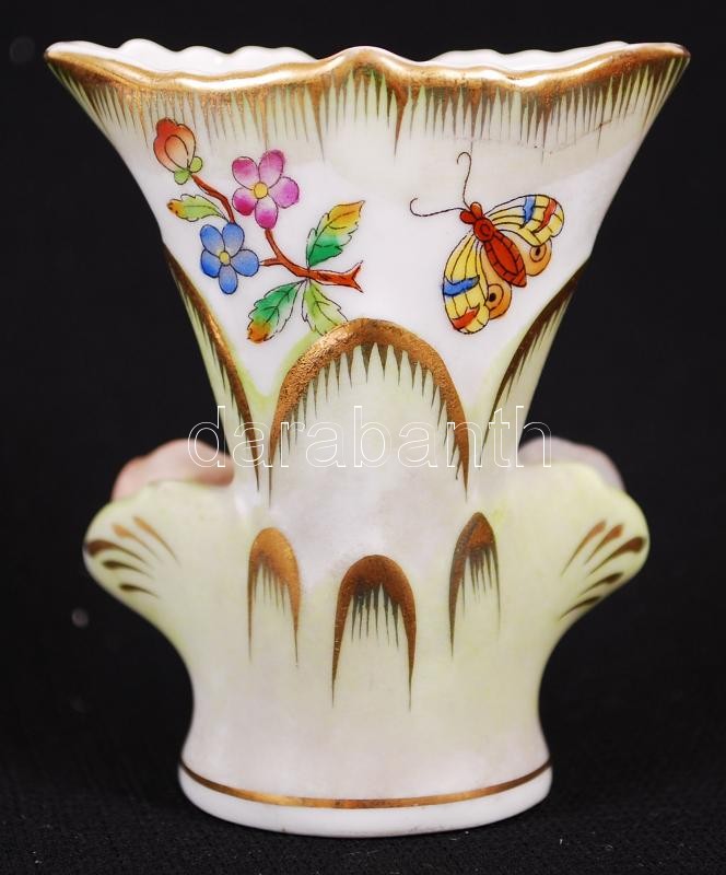 Leírás: Kézzel festett aranyozott Viktória-mintás jelzett Herendi porcelán fogpiszkálótartó / Handpainted Herendi chinaware toothpick holder 7cm
