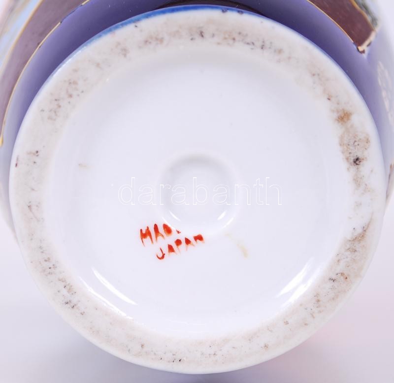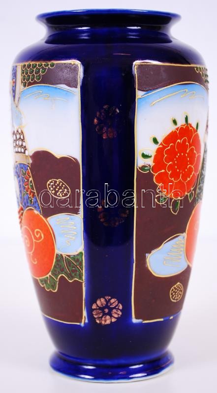 Kézzel festett japán porcelán váza (tetején 1mm-es csorba), kopott, jelzett, /