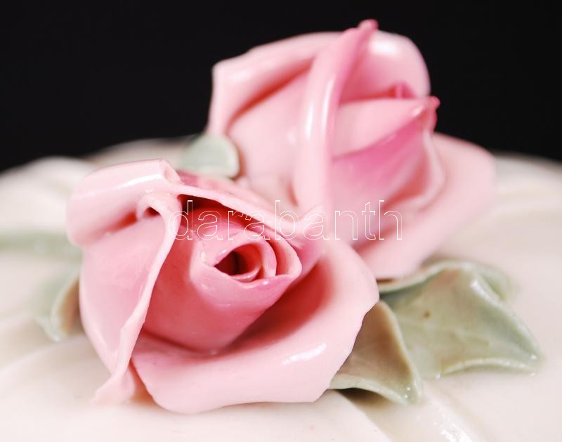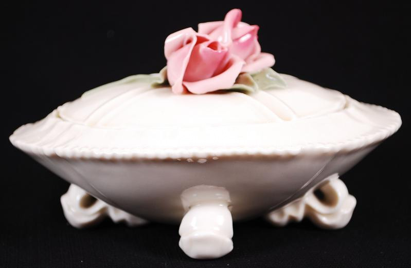 Leírás: Kézzel festett rózsás jelzett ENS porcelán bonbonier (apró sérülés a rózsán) /