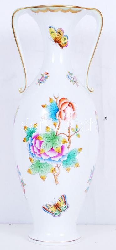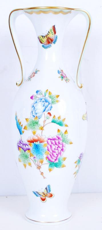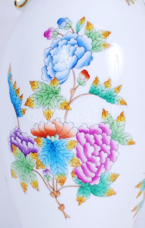 Leírás: Kézzel festett sorszámozott Viktória mintás jelzett Herendi porcelán füles váza hibátlan állapotban/