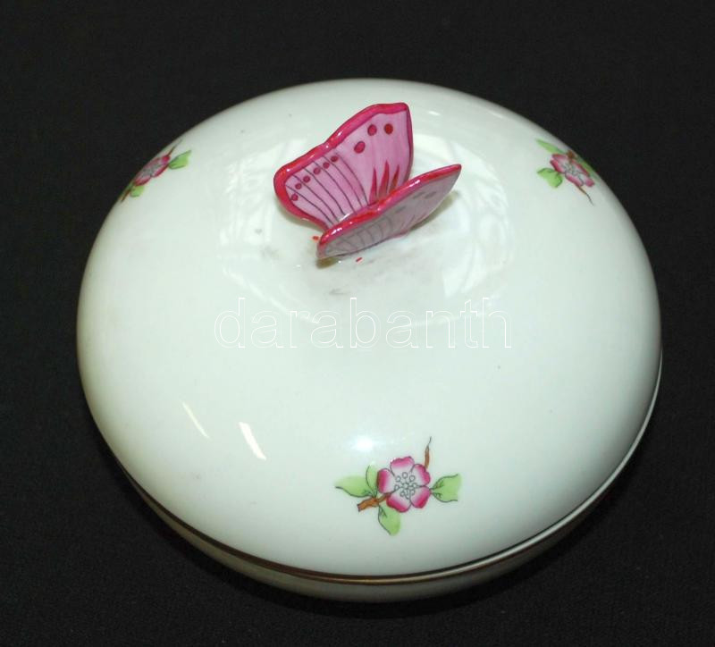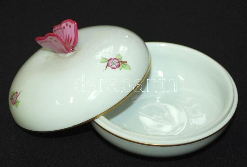 Kézzel festett sorszámozott, virág díszítéssel, lepke fogóval,jelzett Herendi porcelán bonbonier hibátlan állapotban /