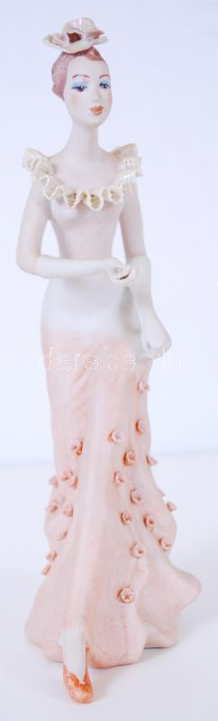 Leírás: Lépő hölgy. Jelzett román porcelán figura, sérült hátul, kézzel festett, m:23 cm / Porcelain figure