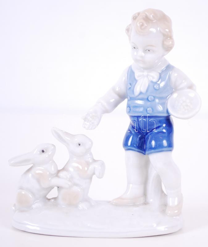 Leírás: Lippelsdorf kisfiú és nyuszik, kézzel festett, jelzett, hibátlan, m:11 cm, h:9 cm