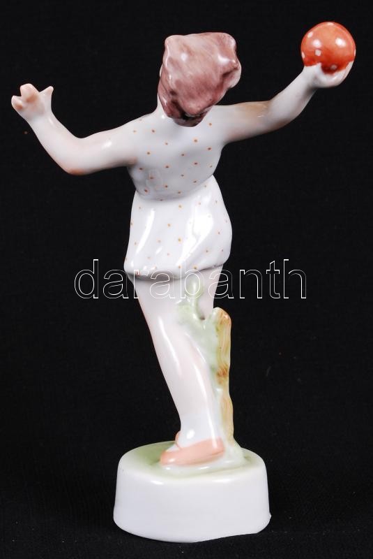 Leírás: Zsolnay kislány a labdával, kézzel festett, jelzett, hibátlan, m:13 cm / Zsolnay porcelain figure, flawless condition