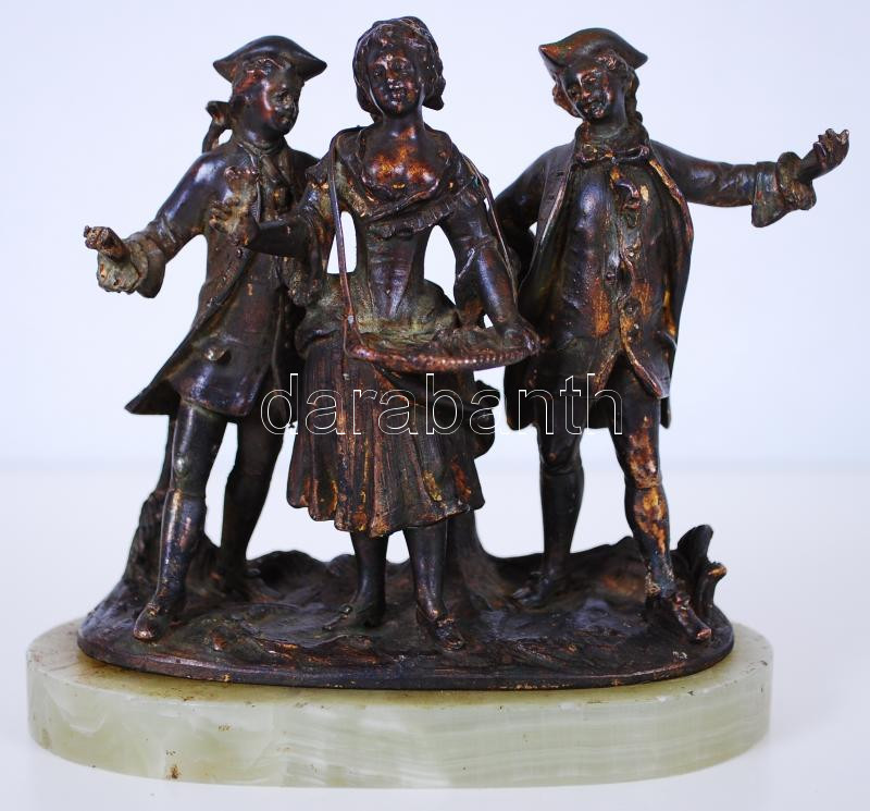 Rokokó háromszög. Festett spiáter kisplasztika márvány talapzaton /