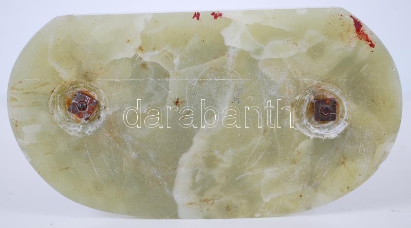 Leírás: Rokokó háromszög. Festett spiáter kisplasztika márvány talapzaton /