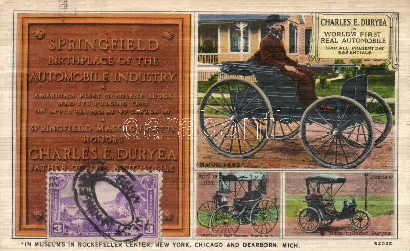 Leírás: Springfield, Birthplace of the automobile industry; Charles E. Duryea memorial card, automobiles (EK)