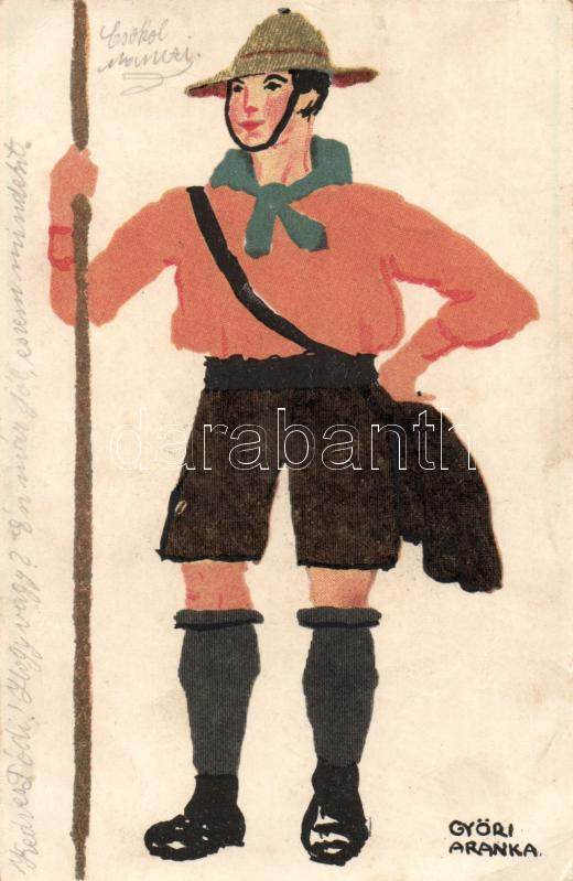 Ungarische Werkstätte; A fáradtságnak fittyet hányok: Diana sósborszezst használok! cserkész / Scout, advertisement on the backside s: Győri Aranka (EK)