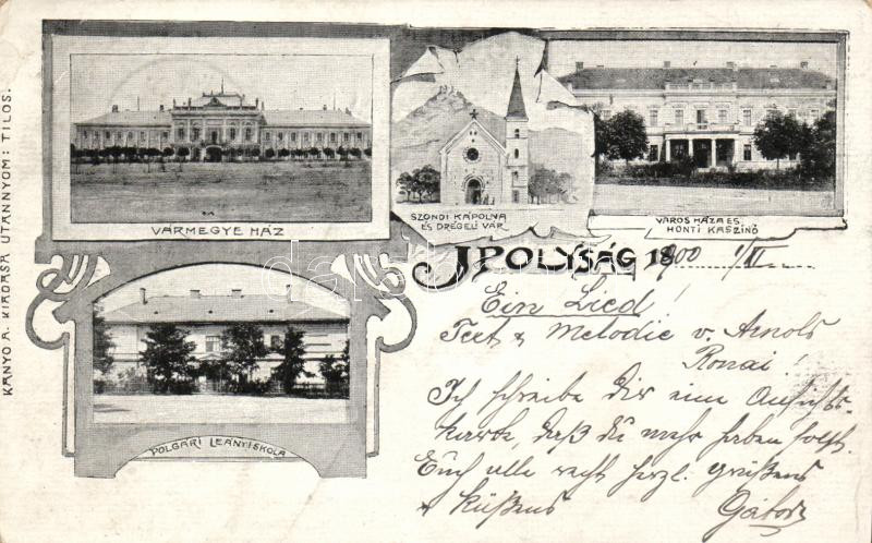 Ipolyság, Vármegye ház, Szondi kápolna és Drégely vár, városháza, Hont... https://www.darabanth.com/hu/182-Gyorsarveres/182.0/Kepeslapok/Felvidek~200008/Ipolysag-Varmegye-haz-Szondi-kapolna-es-Dregely-var-varoshaza-Honti-kaszino-Polgari-~II518323