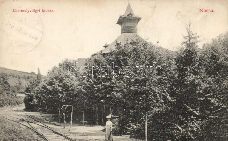 Kassa, Csermelyvölgyi kioszk, vasút / kiosk, railway, Divald https://www.darabanth.com/hu/182-Gyorsarveres/182.0/Kepeslapok/Felvidek~200008/Kassa-Csermelyvolgyi-kioszk-vasut-kiosk-railway-Divald~II654801