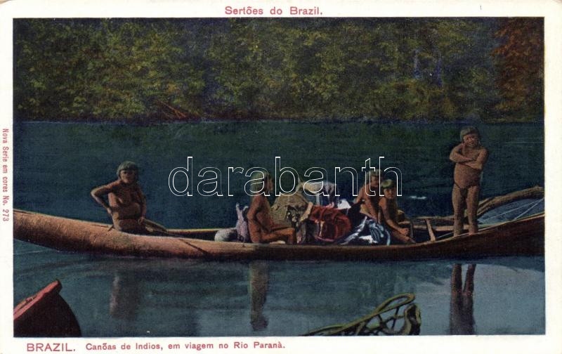 Leírás: Brazilian Indian folklore, Canoes of Indians, traveling in the Paraná River
