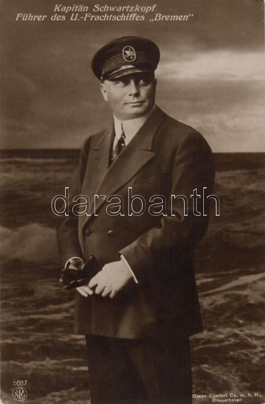 Captain Schwartzkopf; commander of submarine 'Bremen' (EK) https://www.darabanth.com/hu/182-Gyorsarveres/182.0/Kepeslapok/Hadihajo~400343/Captain-Schwartzkopf-commander-of-submarine-Bremen-EK~II651129